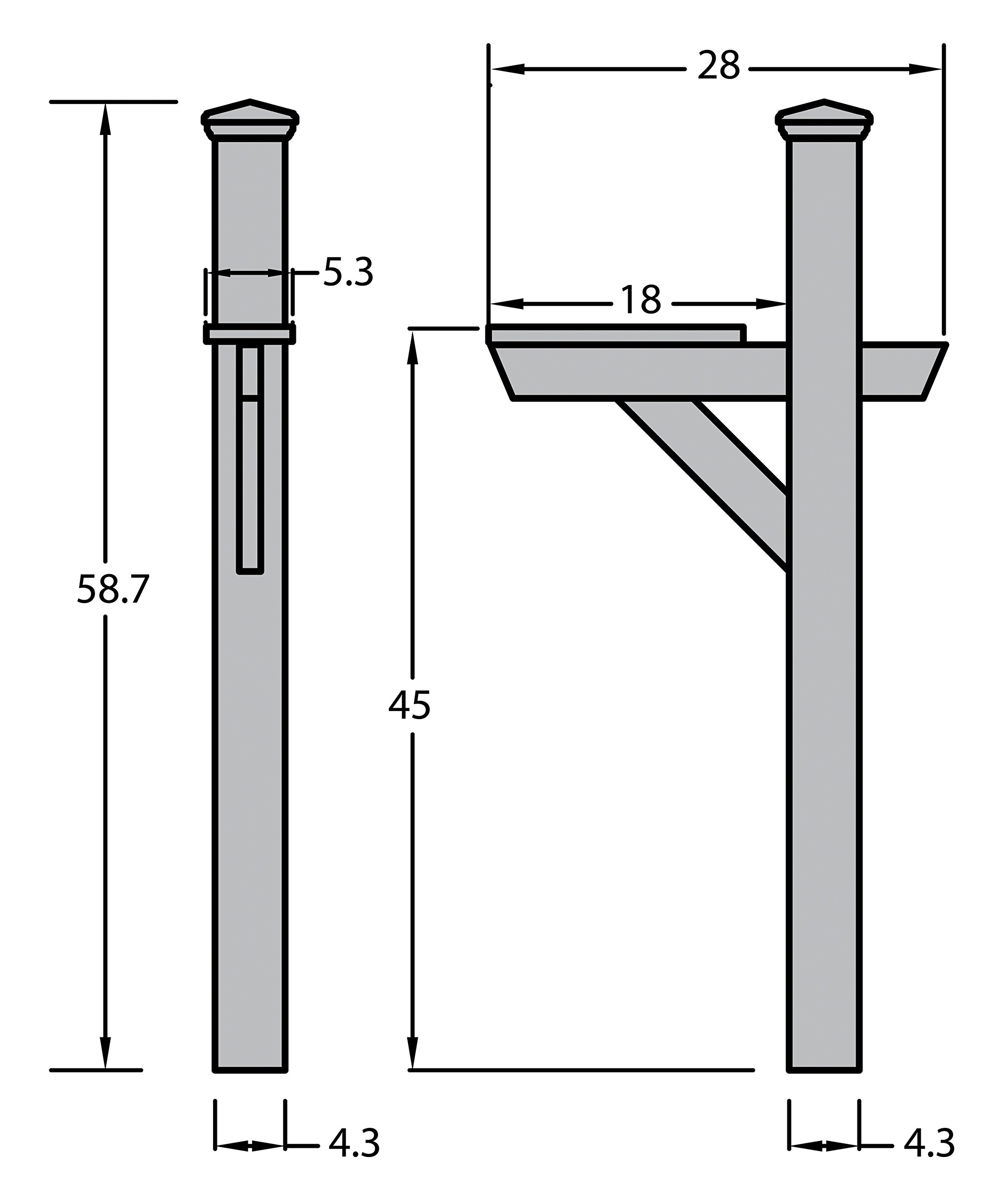 - CLASSIC MAILBOX POST: Handsomely designed, the Hazleton Mailbox Post is the perfect solution to your curbside postal needs. The strong, sturdy mailbox post can be installed directly into the ground and it includes a shelf that can directly support the mailbox of your choice or used as a platform for a mailbox adapter plate. (MAILBOX NOT INCLUDED) Assembled dimensions are 4.3"W x 58.7"H x 28"D (24lbs)